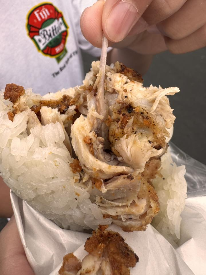 現做麻糬:一群人在現場敲,一群人在包,沾醬油超好吃!